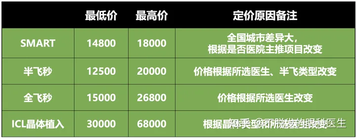 这个部分我其实并不是非常熟悉,因为在我们医院医生只需要做医疗的事,价格是有service同事负责的。所以为了写价格,我特意请小助理帮我多方打听,整理如下(如有错误,请随时改正我)注意:这边的价格是我们确认术式后整理的,有些写7800、6800的价格,也说自己是某一项术式,经过确认后发现有附加费用以及甚至不是我们所介绍的术式,就不会出现在表格内。