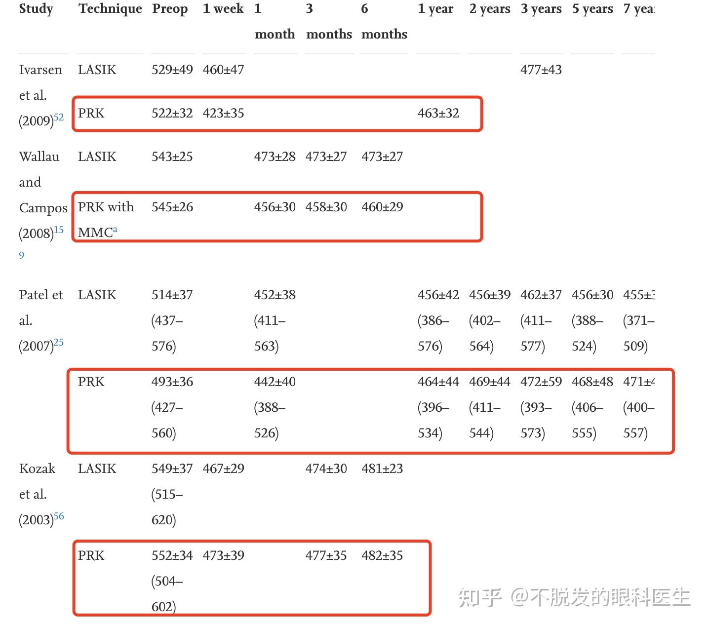 从目前的研究来看,表层手术后,1-7年,均有不同程度的上皮增厚现象。
